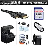8GB Accessories Kit For Sony Alpha NEX-C3 NEX-7 NEX5N Digital Camera Includes 8GB High Speed SD Memory Card + Ac/Dc Charger + Deluxe Case + MIni HDMI Cable + 49mm UV Filter + LCD Screen Protectors + More (Electronics)